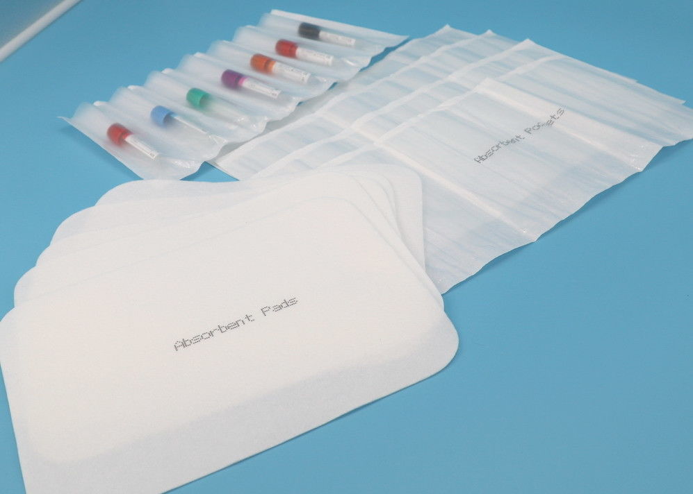 Los cojines absorbentes de AIC son almacenamiento y transporte obediente de muestras de diagnóstico y clínicas, materiales infecciosos y peligrosos, sustancias químicas, productos farmacéuticos y muestras ambientales. Éstos están disponibles en una amplia gama de niveles de la absorbencia calculaban para cumplir todos los requisitos reguladores. Están disponibles con un cierre adhesivo hermético, resistencia de la puntura, impresa siguiendo la información y otras características como sea necesario.