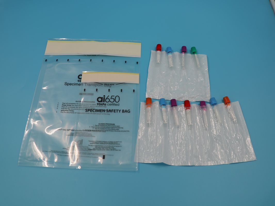 Bolsa de transporte médico AI 650 personalizada - Sistema de cierre hermético biodegradable de 95 kpa con marcado de riesgo biológico