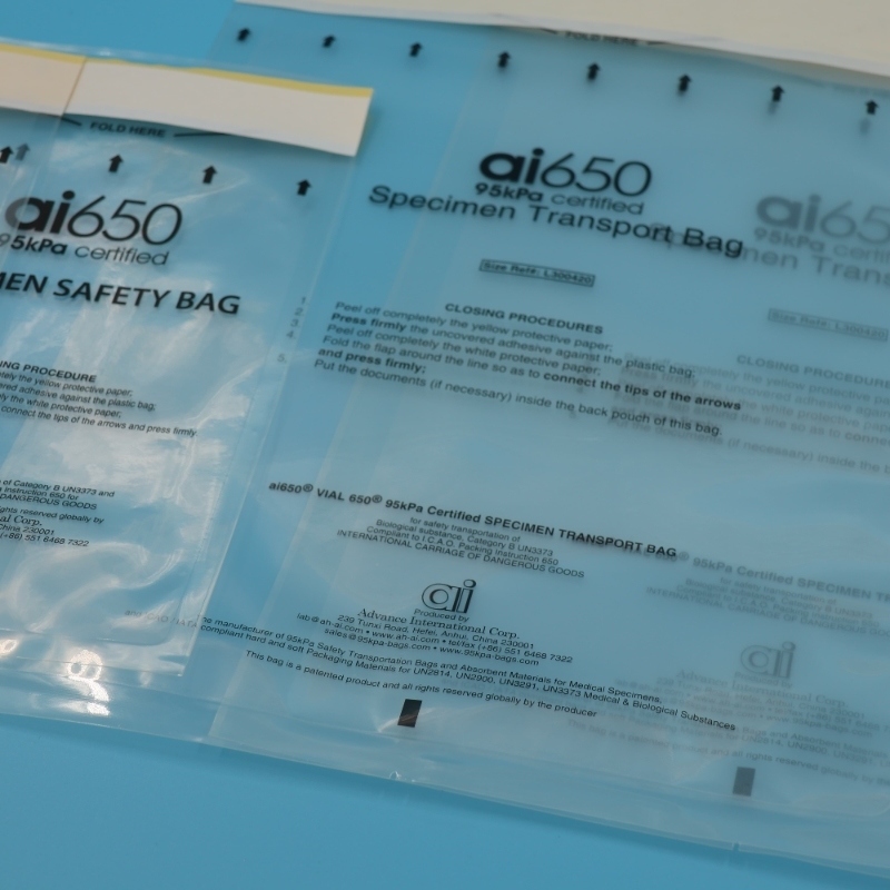 Nombre del producto Bolsa para especímenes de transporte médico biodegradable con cierre hermético personalizado AI 650 95kpa